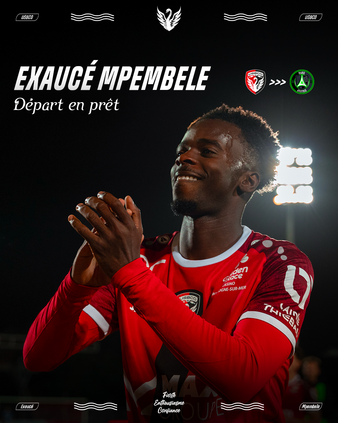 Départ en Prêt | Exaucé Mpembele Publié le : 26/01/2026L’US Boulogne Côte d’Opale annonce le prêt d’Exaucé Mpembélé au Paris 13 Atletico, jusqu’à la fin de la saison.